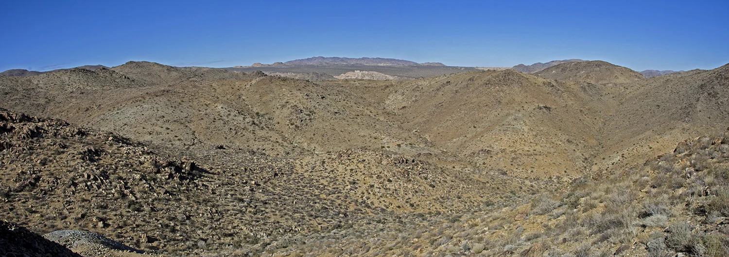 I was heading out into the backcountry of Joshua Tree, to a place I'd never been before. I drove down the Geology Tour Road to the Pleasant Valley Backcountry Board, parked my truck, got my gear together and headed east into Fried Liver Wash. After about 100 yards, I went back to the truck and got some more water. I'd be glad later that I did.