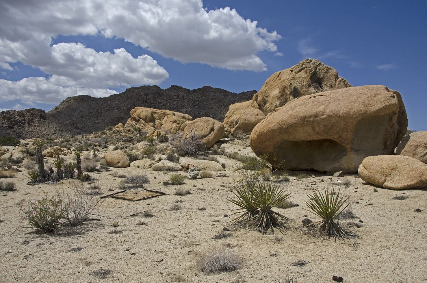 I walked around the entire rock pile that holds this shelter, but didn't see anything besides large boulders. No desert gold, no signs of Native American habitation or anything else man-made. But I was excited to have found something like this, and totally by chance. It made me wonder what else I may have hiked near and never seen.