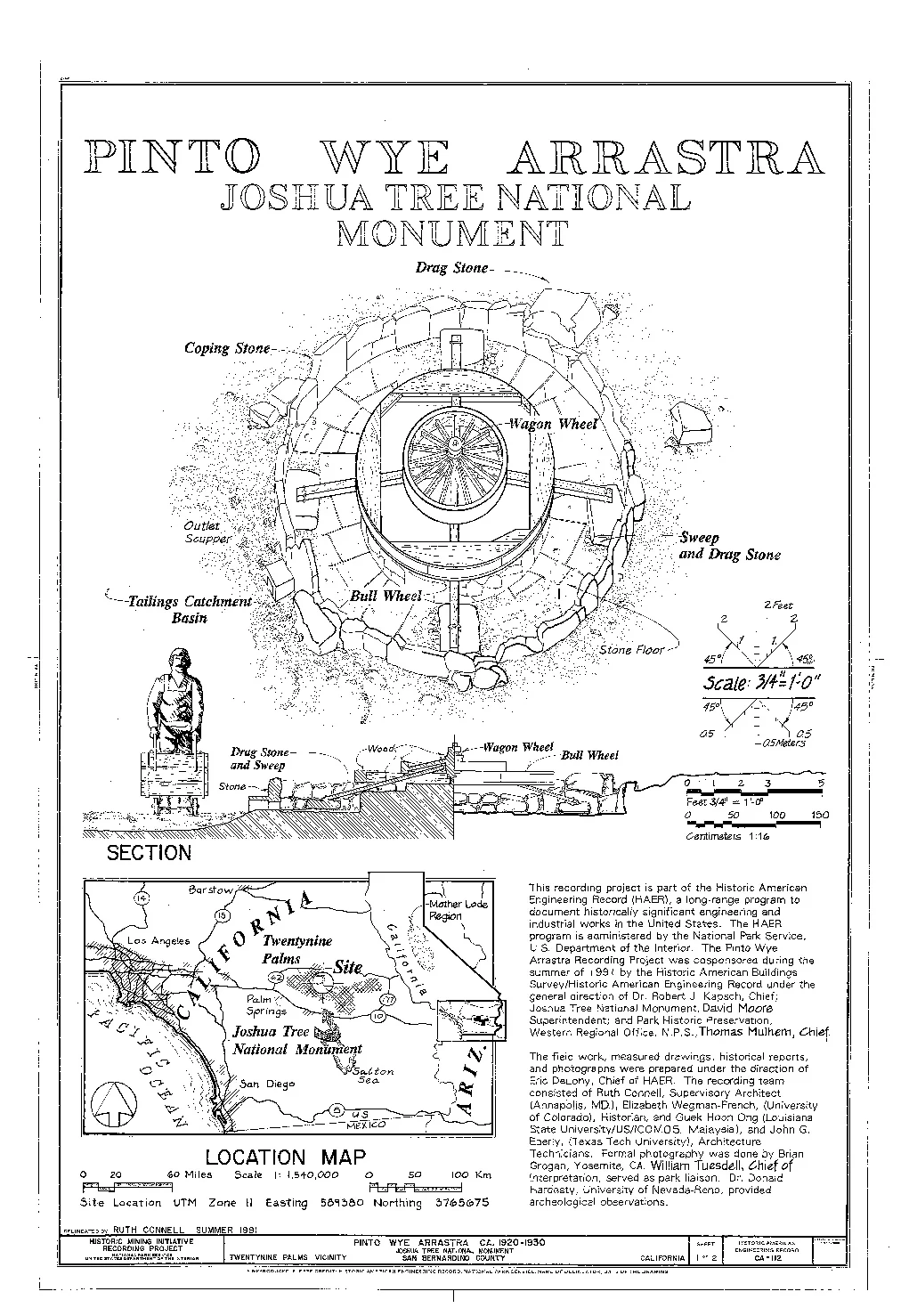 Why is it called the Pinto Wye Arrastra? I've wondered about that and had a theory, so I decided to see if I could find any facts to back it up. And as things turned out, my suspicions were correct. As it wasn't the only arrastra in the park, it couldn't just be called "the arrastra." That would cause uncertainty and vague feelings of unrest. But as it was located about three-quarters of a mile northwest of a "Y" in the main park road (the spot where Pinto Basin Road meets Park Blvd.), someone somewhere sometime called it the Pinto Wye Arrastra and the name stuck.