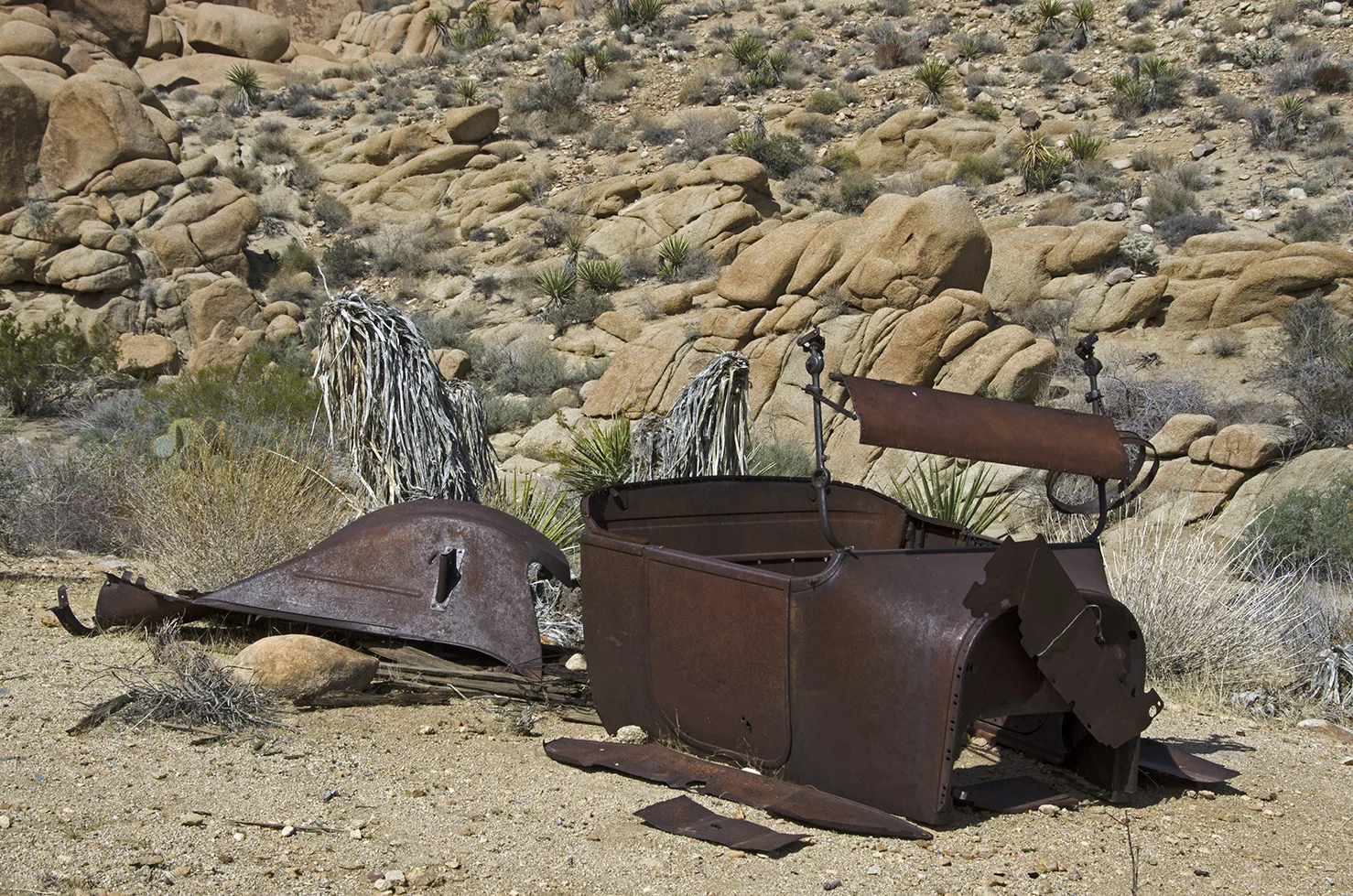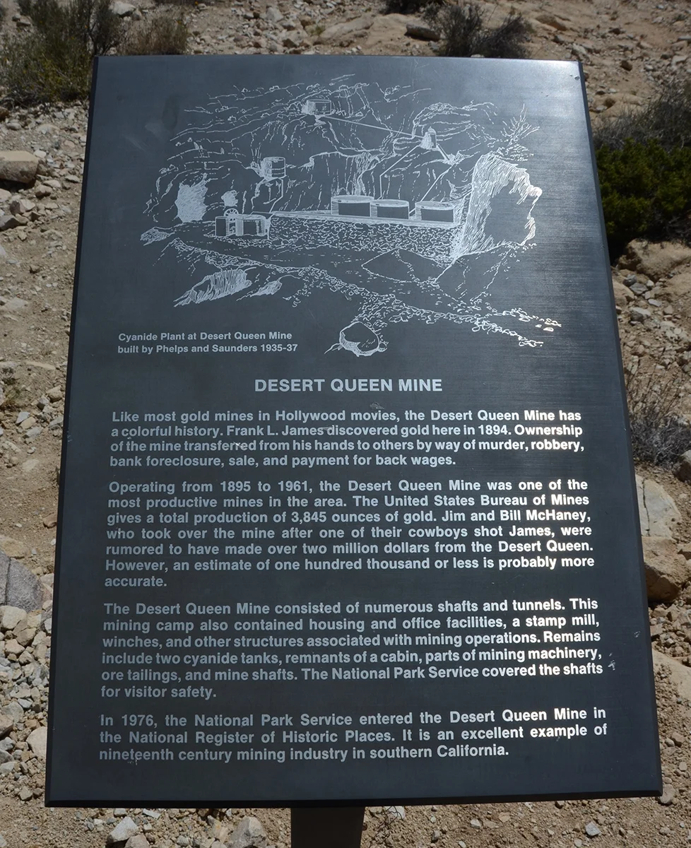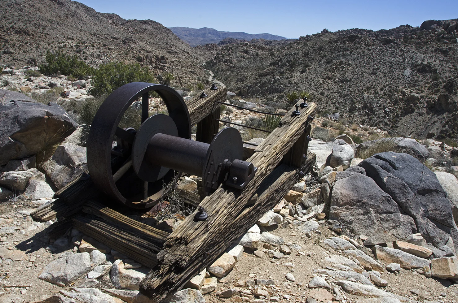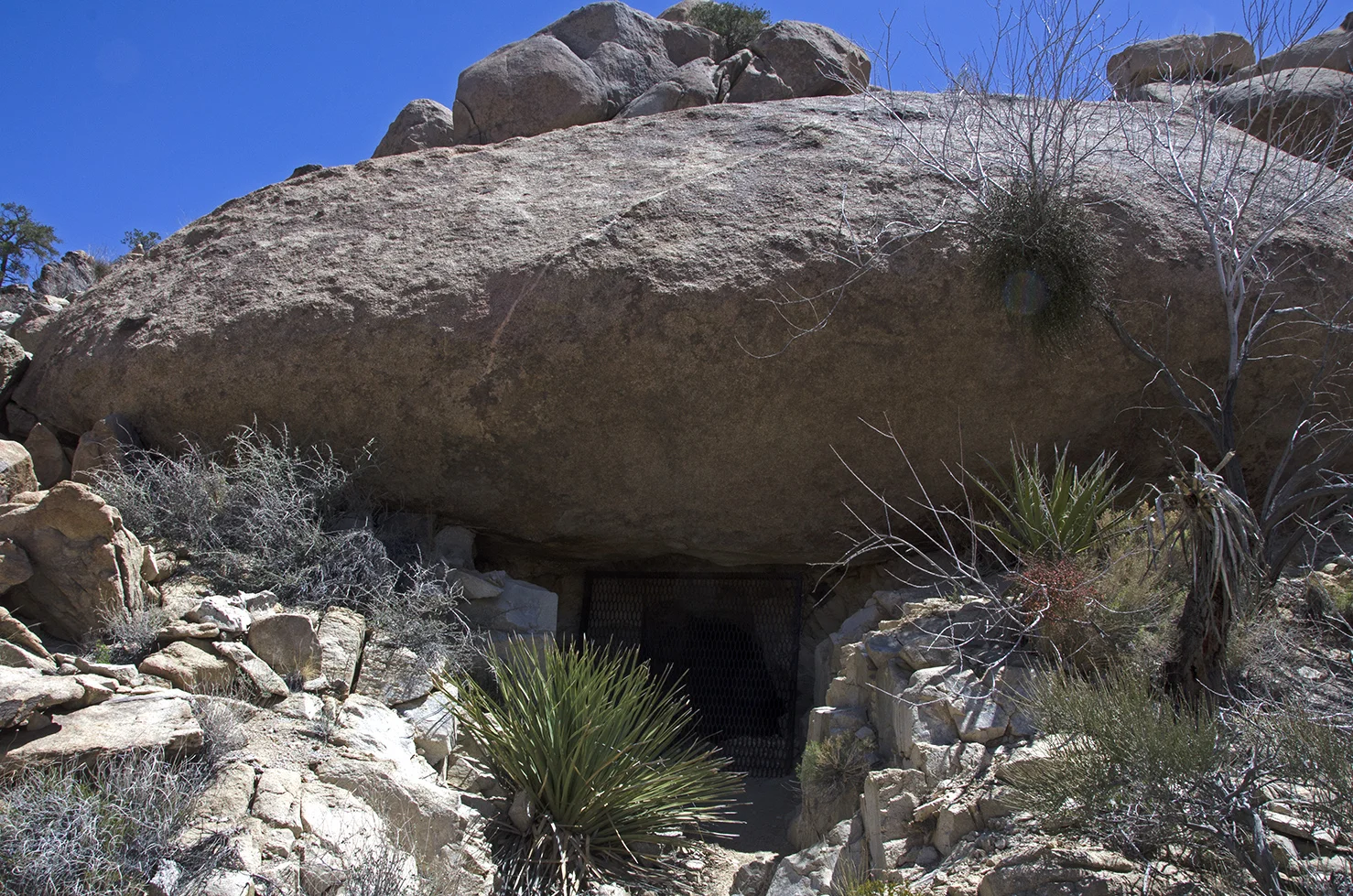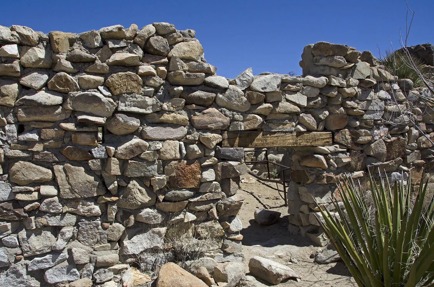 Details about the discover and history of the Desert Queen are sketchy, to say the least. There are several stories/legends about who discovered the claim and how it changed hands over the years. Many of the famous names of J Tree's past are linked with the DQ: the McHaney's and Bill Keys among them. Claim jumping, a knife attack, shooting, legal action and murder were all involved. When gold is in play, the stakes are high. By all accounts, the mine began operation in 1895 and had some good runs, some off years, changes of ownership and a lot of work done on improving the mines. At one time there were three redwood cabins used as living quarters at the mine, which Keys tore down after he acquired title to the claims in 1917. He later rebuilt one at his ranch which was used as the family kitchen. The final reported production took place in 1941, but the mine was still worked intermittently from 1948 to 1961. The U.S. Bureau of Mines gives a total production from the DQ of 3,845 ounces of gold. The actual production could have been quite higher, but we will never know.