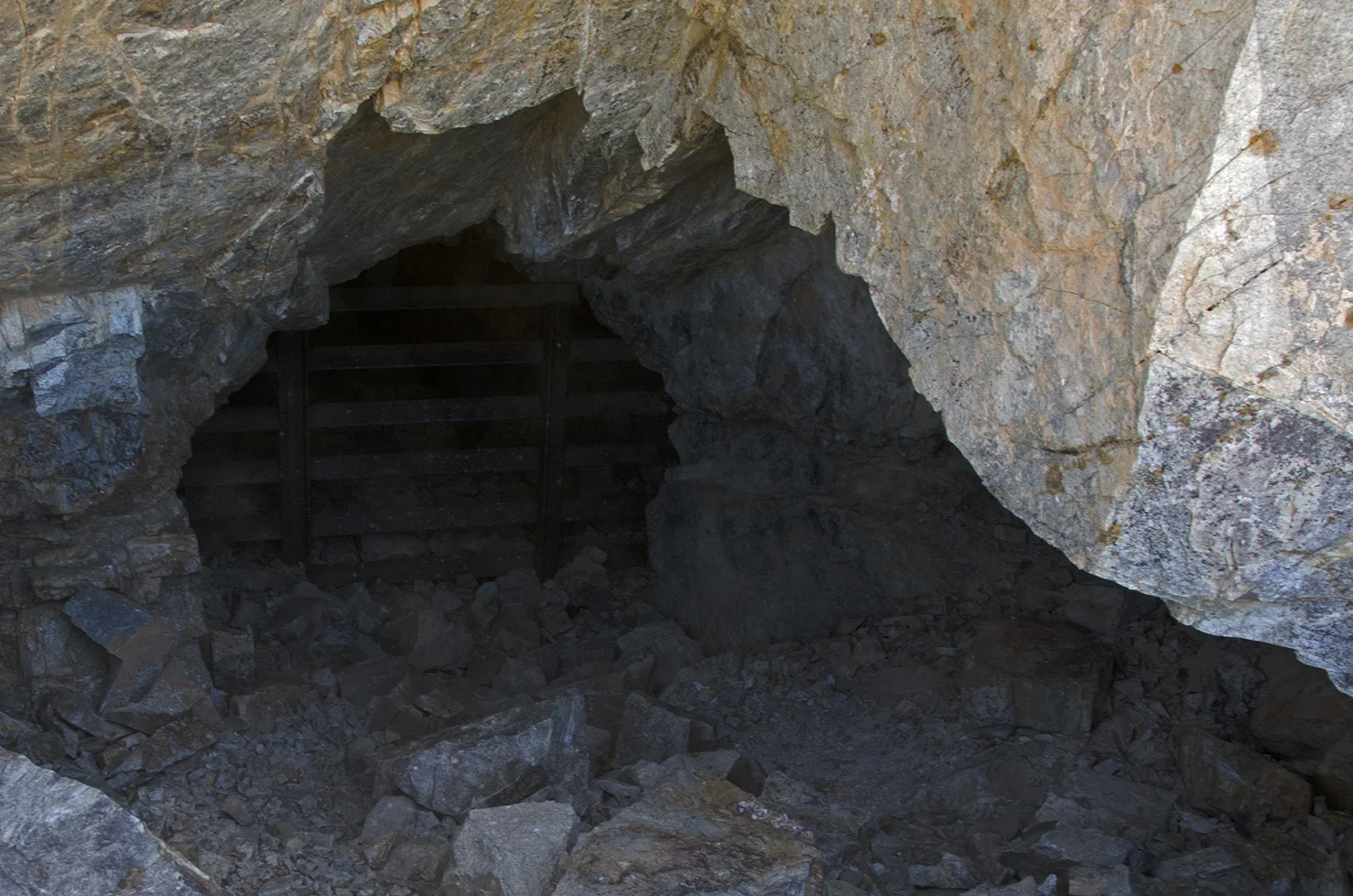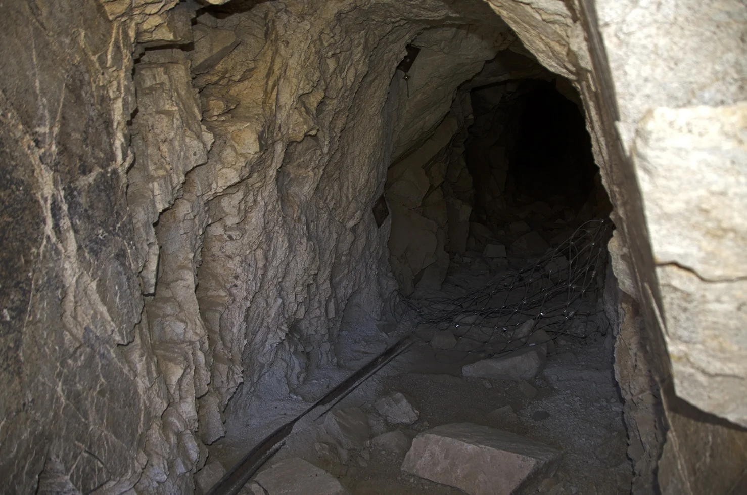 Possibly from this inclined shaft that is up behind the tailings pile.