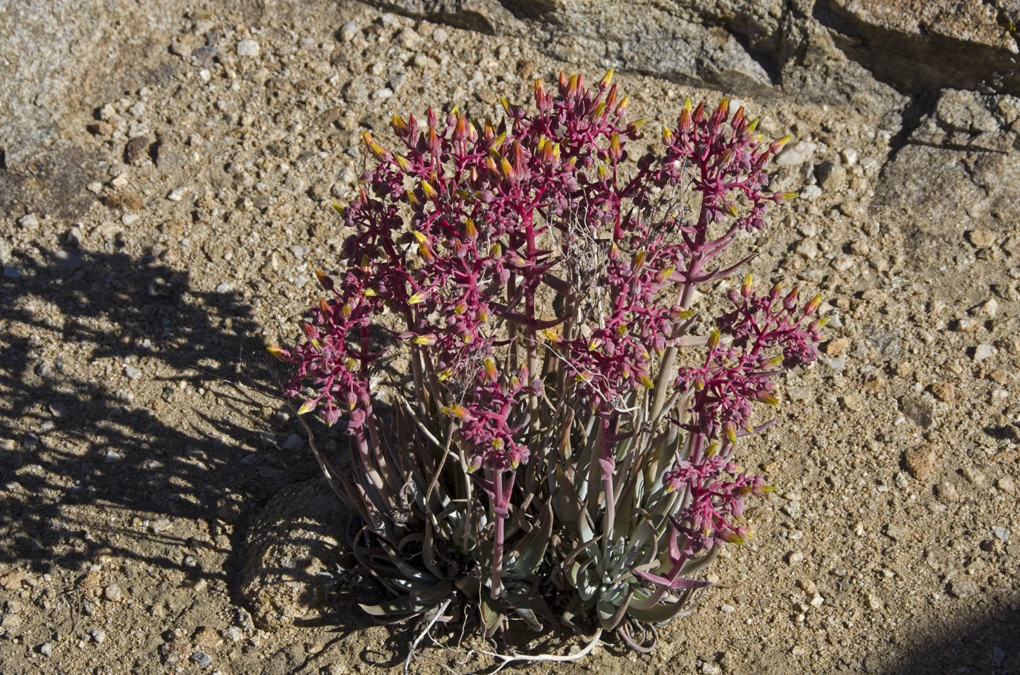These little guys were having their spring fling. They were quite numerous along the trail. They are know to the botanical world as "Dudley saxosa," or "Panamint live-forever." A true desert perrenial succulent. This is the first time I can remember seeing them in bloom.