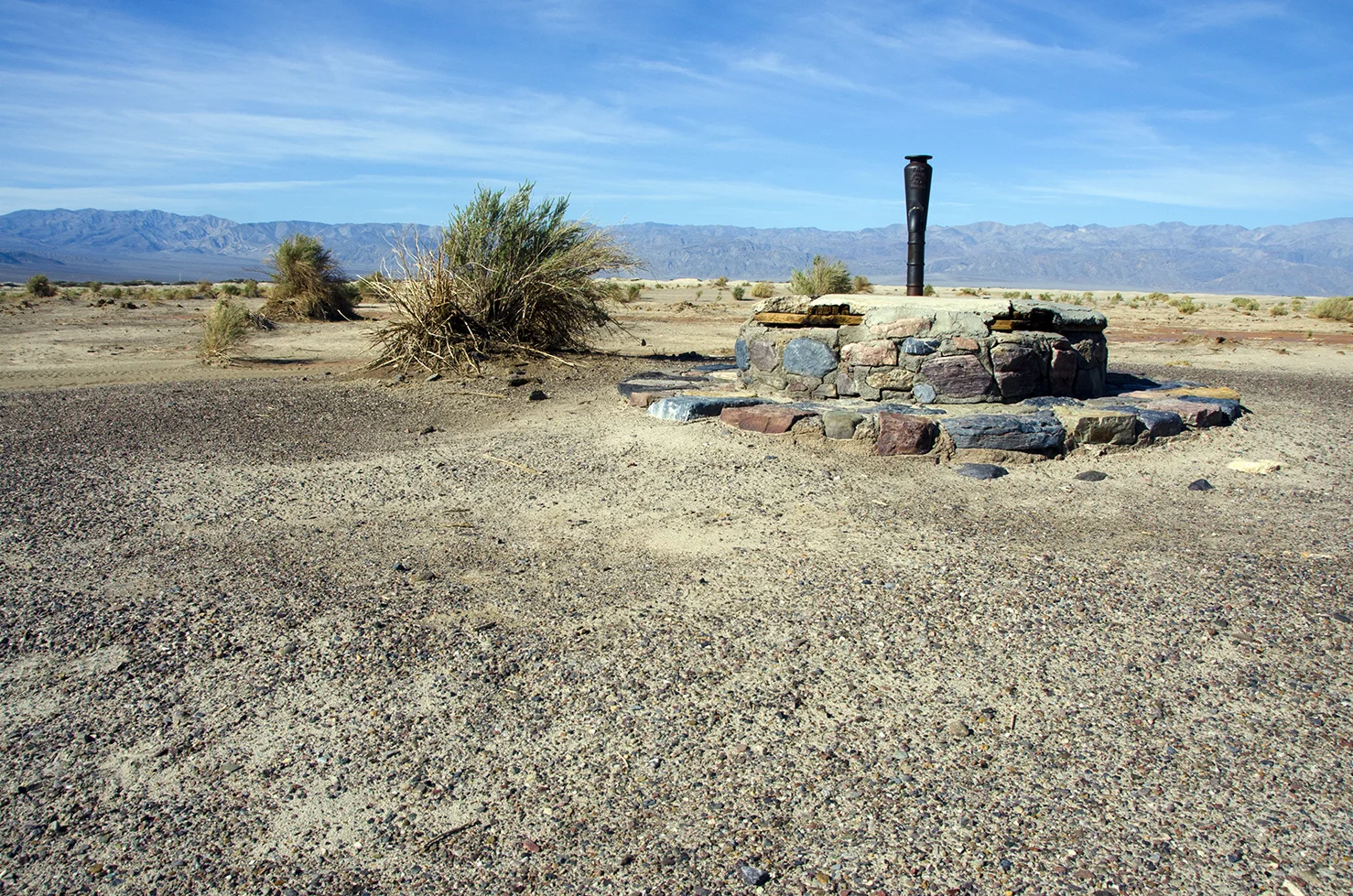 Unfortunately, the decline of Skidoo and Rhyolite as great mining centers was swift, and the demise of the Stovepipe Wells waystation was similarly abrupt. Sand, wind and time have erased all evidence of the waystation, other than the capped well. But history whispers.