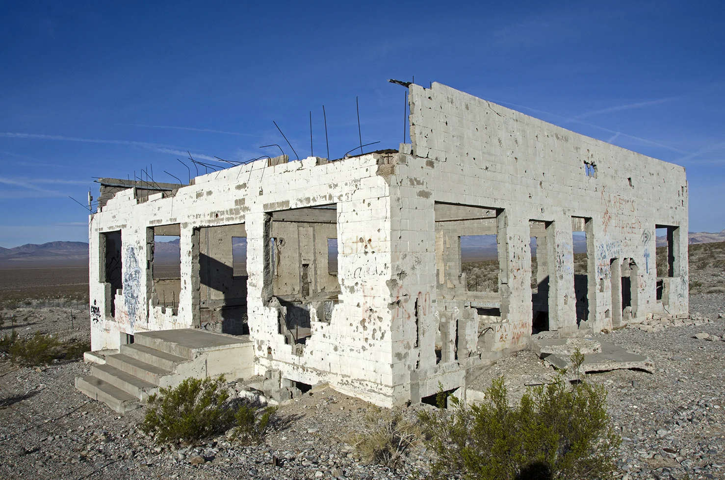 Take U.S. Route 95, Veterans Memorial Highway, south for a few miles from Beatty, Nevada, and look towards the east. You'll spot some colorful hills and a group of very interesting cement building ruins. I had seen a few pictures of the place a while back and decided to check it out the next time I was in the area. Well, I was in the area on Thursday, October 8 of 2015, so check it out I did.