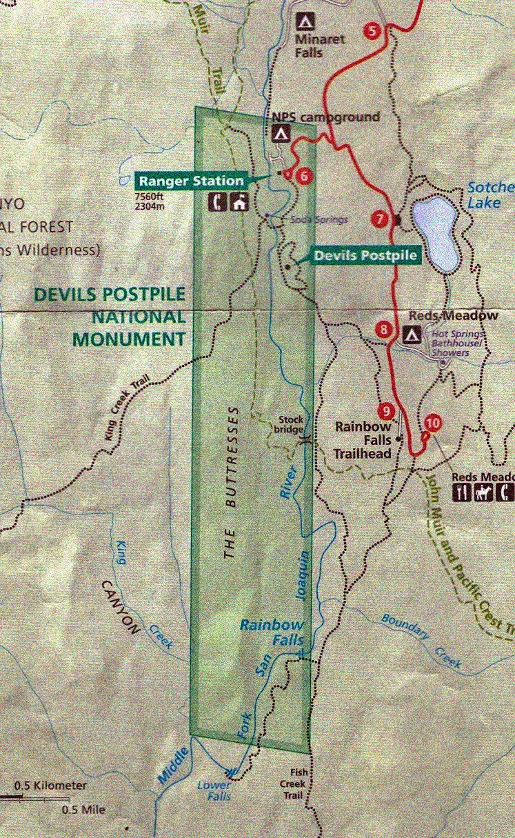 /“Established in 1911 by presidential proclamation, Devils Postpile National Monument protects and preserves the Devils Postpile formation, the 101-foot high Rainbow Falls, and pristine mountain scenery. The formation is a rare sight in the geologic world and ranks as one of the world’s finest examples of columnar basalt. Its columns tower 60 feet high and display an unusual symmetry.”