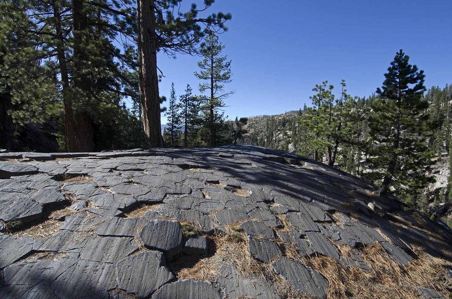 A close-up look at the tops of some of the postpiles. Maybe in a few hundred thousand years, these piles will be at the edge.